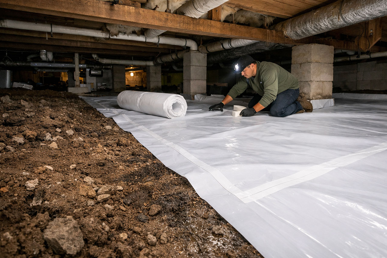 We install high-quality vapor barriers that reduce humidity beneath your home and protect critical structural components.