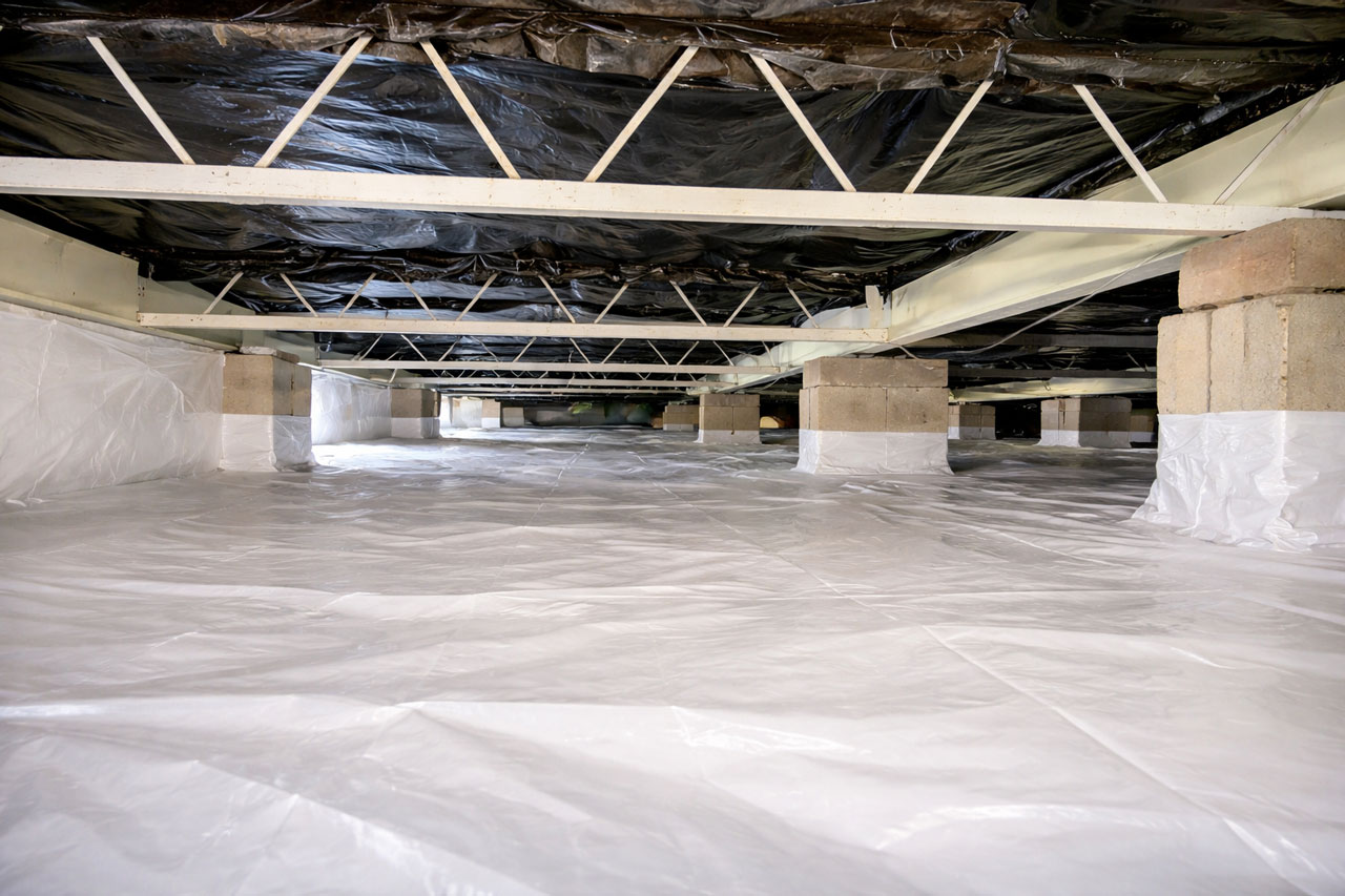 We place moisture barriers directly over exposed soil to prevent ground humidity from rising into the under-home space. This is one of the most important steps in maintaining a dry crawl space environment.